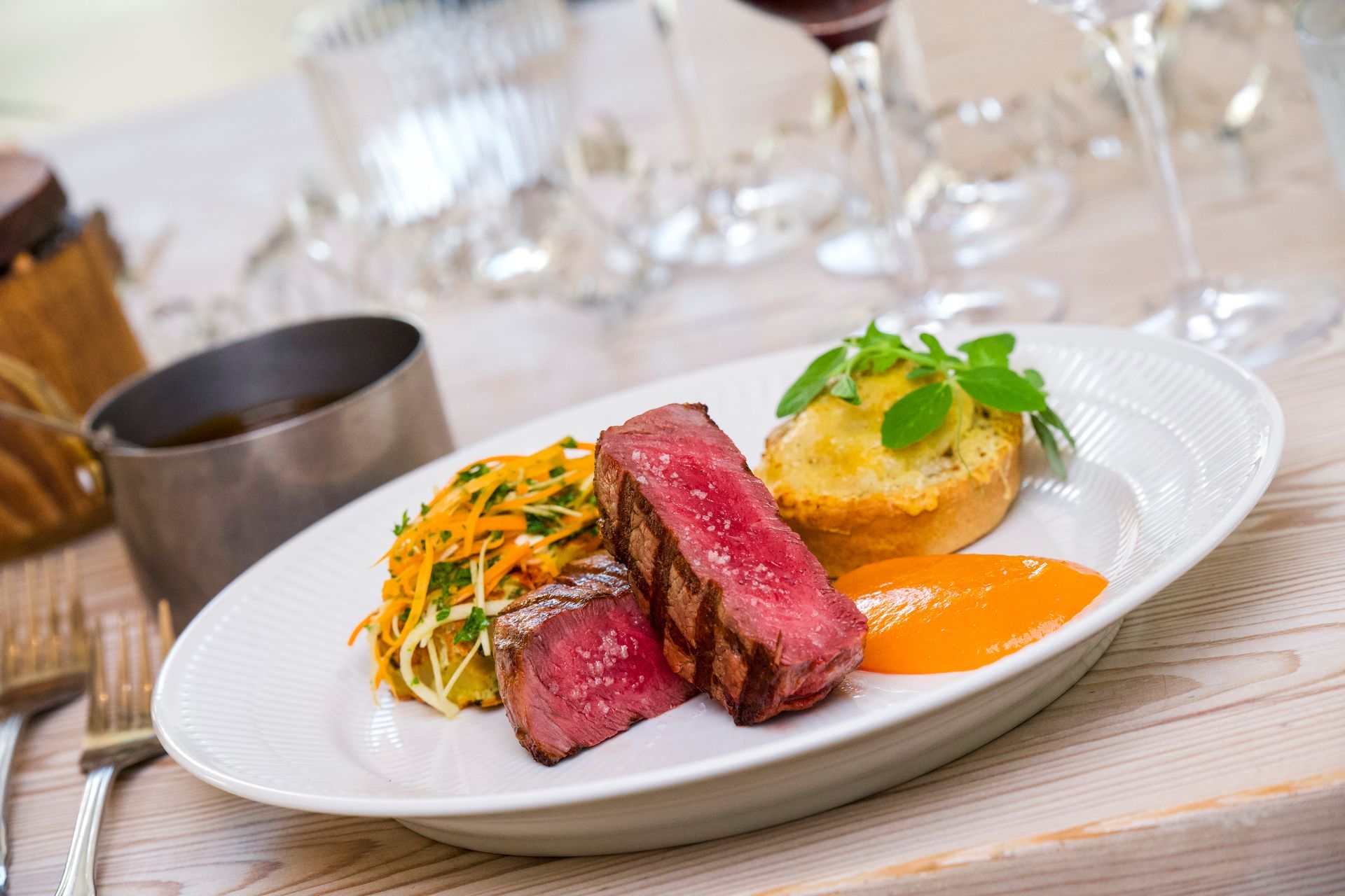 er en ren Bordeaux merlot med moden mørk frugt, bløde tanniner og en afbalanceret friskhed, skabt uden fadlagring for at bevare druens rene udtryk. Den runde frugt og silkebløde struktur matcher mørbradens saftighed og den fyldige sauce uden at overdøve rettens finesse. Samtidig giver vinens friske syre og mineralske undertoner en elegant kontrast til sødmen fra rodfrugter og græskar